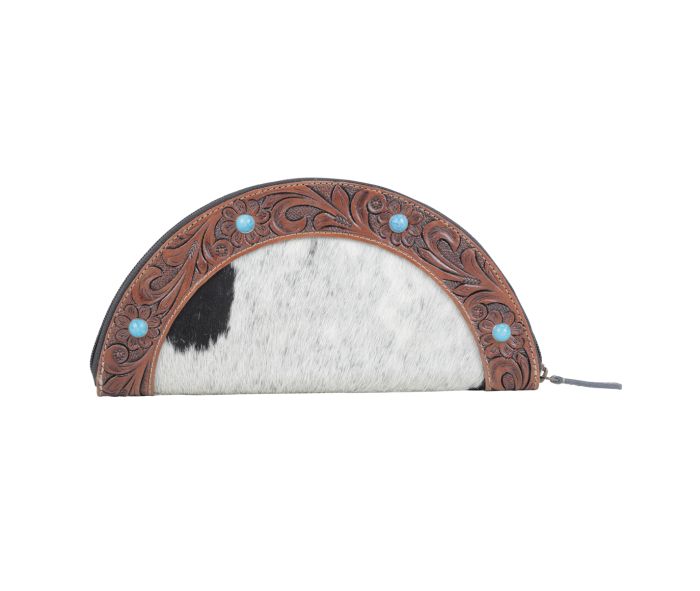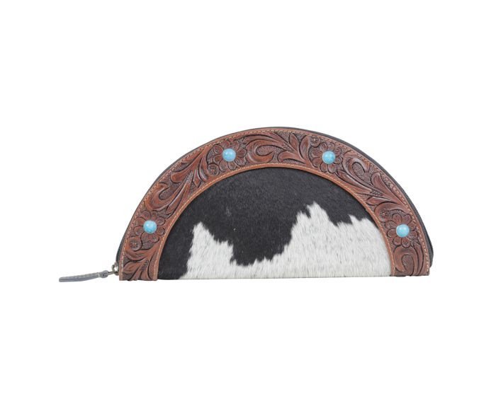 Inure wallet boasts a chic look with hand-tooling work on the upper section and hairon leather at the bottom. It is a resilient built and compact size makes it ideal for everyday use.